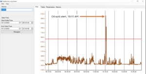 Wireless data collected via a remote radio modem revealed distinct signal spikes corresponding to oil contamination, clearly separated from the baseline seawater signal. This confirmed the sensor’s high sensitivity and reliability in real-world conditions.